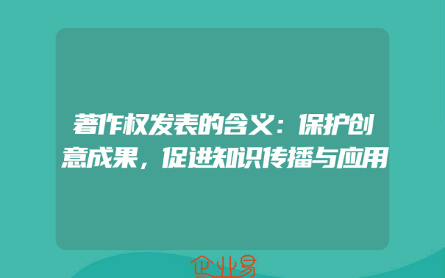 - 著作权发表的含义:保护创意成果,促进知识传播与应用