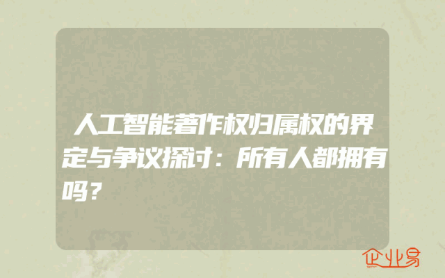 - 人工智能著作权归属权的界定与争议探讨:所有人都拥有吗?