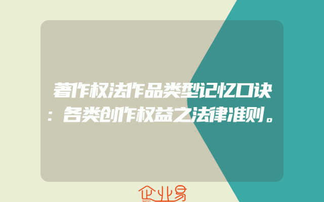 - 著作权法作品类型记忆口诀:各类创作权益之法律准则。