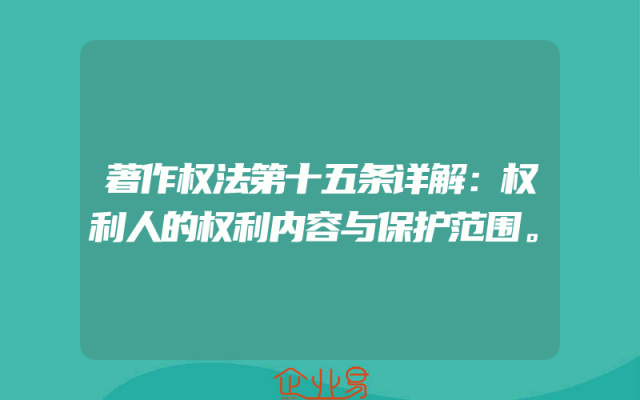 - 著作权法第十五条详解:权利人的权利内容与保护范围。