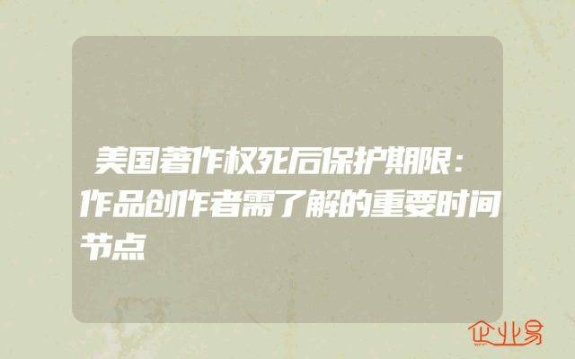 - 美国著作权死后保护期限:作品创作者需了解的重要时间节点