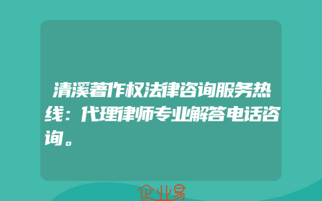 - 清溪著作权法律咨询服务热线:代理律师专业解答电话咨询。