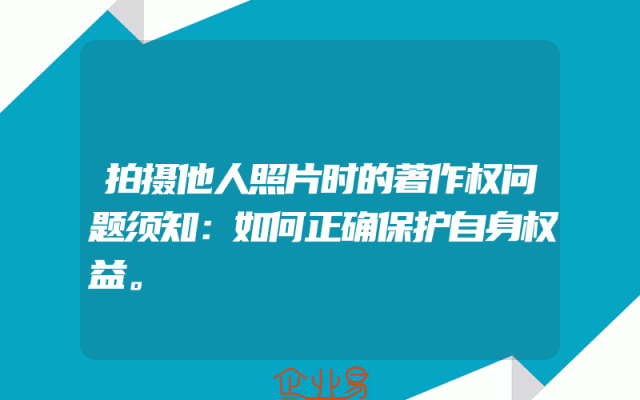 - 拍摄他人照片时的著作权问题须知:如何正确保护自身权益。