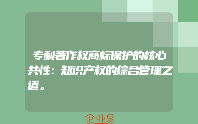 - 专利著作权商标保护的核心共性:知识产权的综合管理之道。