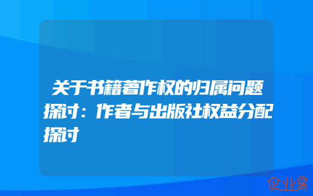 - 关于书籍著作权的归属问题探讨:作者与出版社权益分配探讨