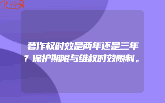 - 著作权时效是两年还是三年?保护期限与维权时效限制。