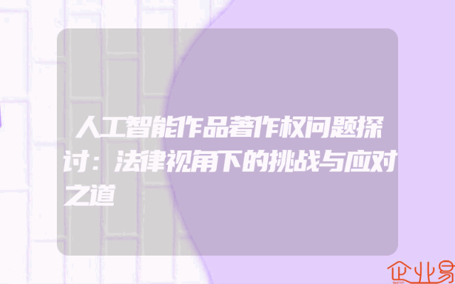 - 人工智能作品著作权问题探讨:法律视角下的挑战与应对之道