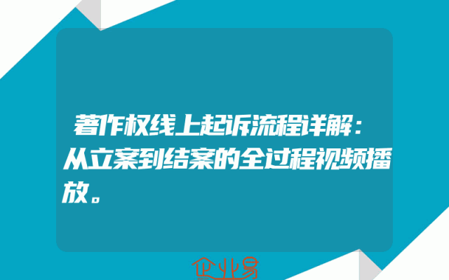 - 著作权线上起诉流程详解:从立案到结案的全过程视频播放。