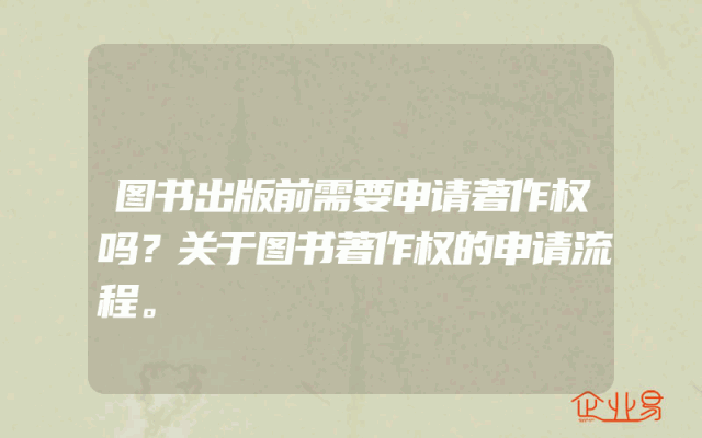 - 图书出版前需要申请著作权吗?关于图书著作权的申请流程。