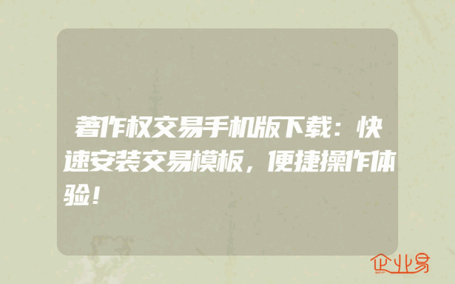 - 著作权交易手机版下载:快速安装交易模板,便捷操作体验!