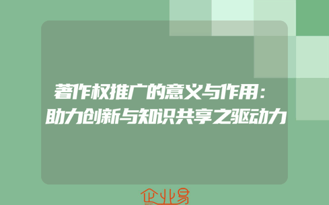 - 著作权推广的意义与作用:助力创新与知识共享之驱动力
