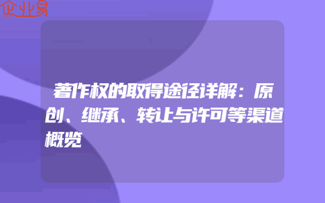- 著作权的取得途径详解:原创、继承、转让与许可等渠道概览