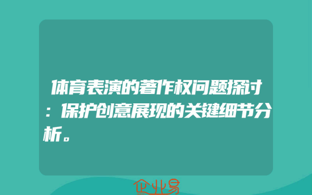 - 体育表演的著作权问题探讨:保护创意展现的关键细节分析。