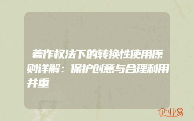 - 著作权法下的转换性使用原则详解:保护创意与合理利用并重