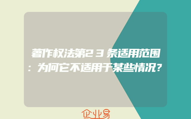 - 著作权法第23条适用范围:为何它不适用于某些情况?