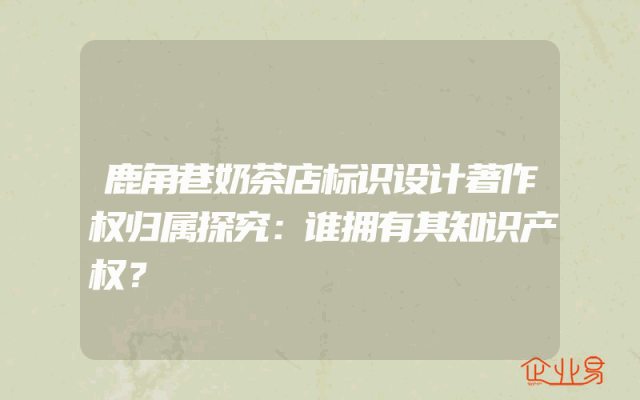 - 鹿角巷奶茶店标识设计著作权归属探究:谁拥有其知识产权?