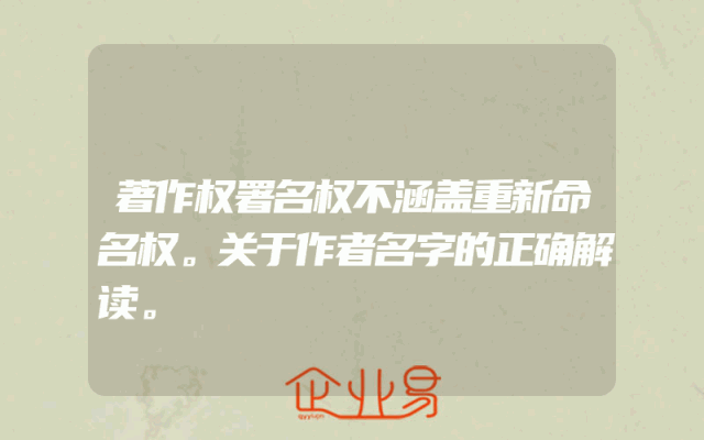 - 著作权署名权不涵盖重新命名权。关于作者名字的正确解读。