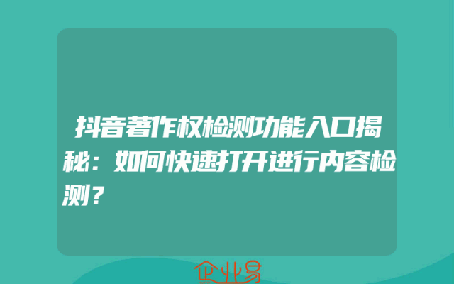 - 抖音著作权检测功能入口揭秘:如何快速打开进行内容检测?