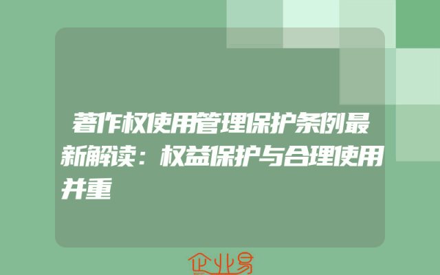- 著作权使用管理保护条例最新解读:权益保护与合理使用并重