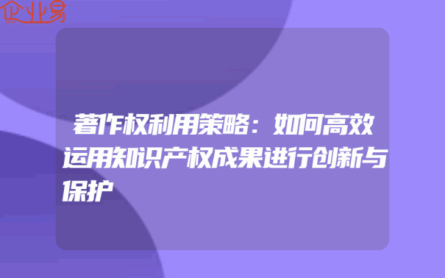 - 著作权利用策略:如何高效运用知识产权成果进行创新与保护