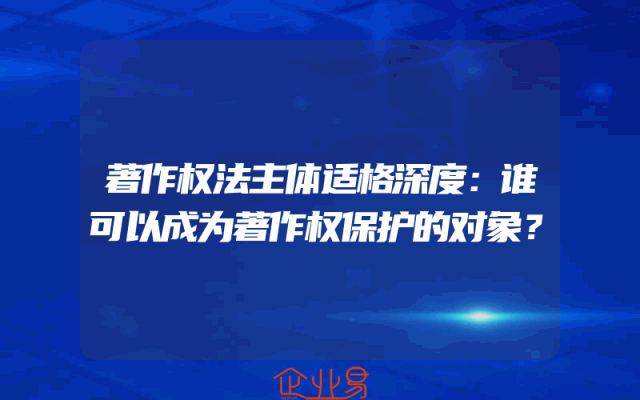 - 著作权法主体适格深度:谁可以成为著作权保护的对象?