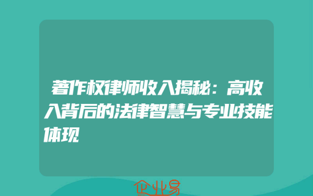 - 著作权律师收入揭秘:高收入背后的法律智慧与专业技能体现