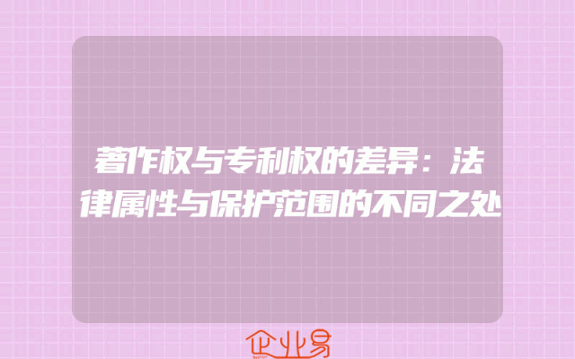 - 著作权与专利权的差异解析:法律属性与保护范围的不同之处一、引言在知识产权领域,著作权与专利权是两种最为常见且重要的权利类型。它们在法律属性、保护范围以及应用等方面存在显著的差异。本文将详细解析这些差异,以便更好地理解二者的特点和作用。二、法