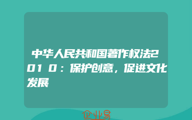 - 中华人民共和国著作权法2010:保护创意,促进文化发展