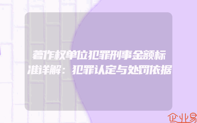 - 著作权单位犯罪刑事金额标准详解:犯罪认定与处罚依据