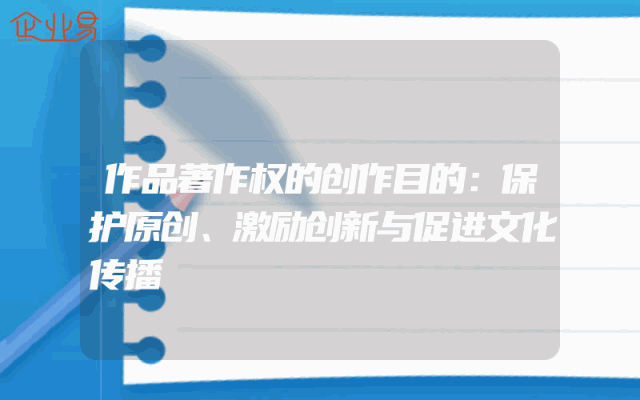 - 作品著作权的创作目的:保护原创、激励创新与促进文化传播