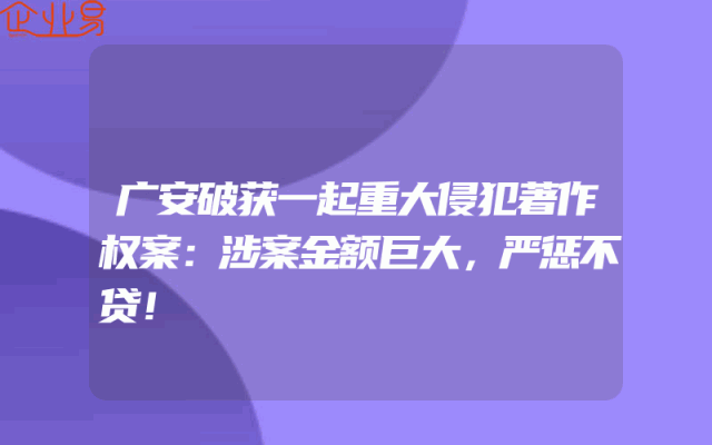 - 广安破获一起重大侵犯著作权案:涉案金额巨大,严惩不贷!