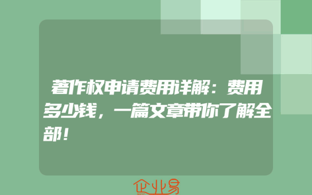 - 著作权申请费用详解:费用多少钱,一篇文章带你了解全部!