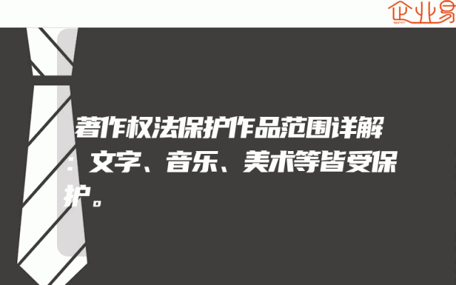 - 著作权法保护作品范围详解:文字、音乐、美术等皆受保护。