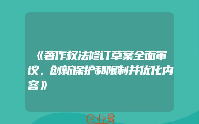 - 《著作权法修订草案全面审议,创新保护和限制并优化内容》