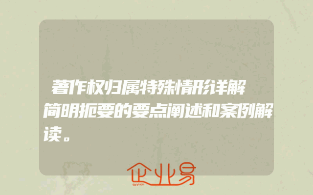 - 著作权归属特殊情形详解 简明扼要的要点阐述和案例解读。