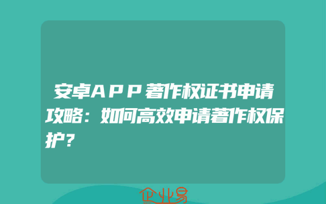 - 安卓APP著作权证书申请攻略:如何高效申请著作权保护?