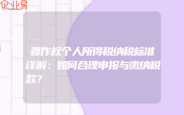 - 著作权个人所得税纳税标准详解:如何合理申报与缴纳税款?