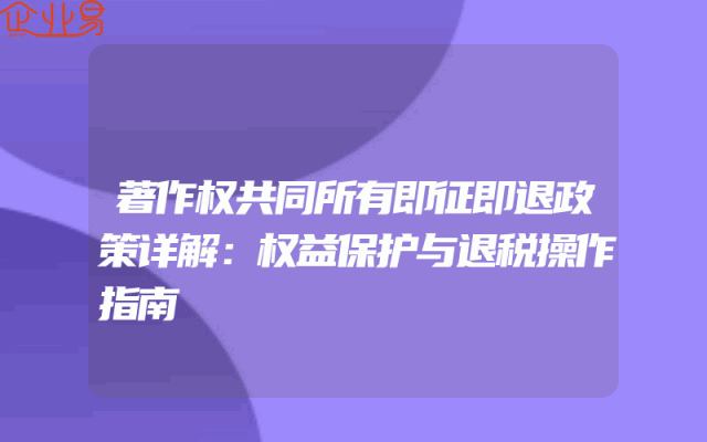 - 著作权共同所有即征即退政策详解:权益保护与退税操作指南