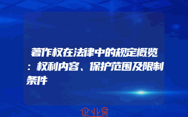 - 著作权在法律中的规定概览:权利内容、保护范围及限制条件
