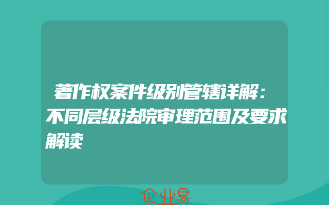 - 著作权案件级别管辖详解:不同层级法院审理范围及要求解读