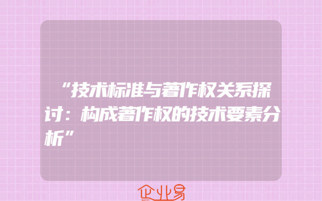 - “技术标准与著作权关系探讨:构成著作权的技术要素分析”