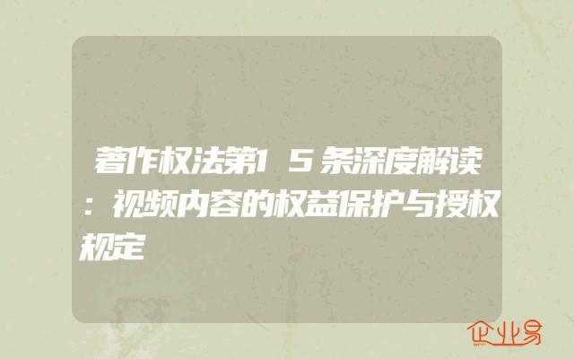 - 著作权法第15条深度解读:视频内容的权益保护与授权规定