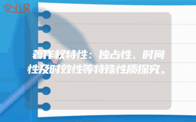 - 著作权特性:独占性、时间性及时效性等特殊性质探究。