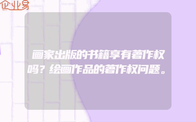 - 画家出版的书籍享有著作权吗?绘画作品的著作权问题。
