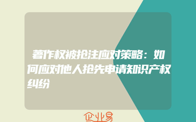 - 著作权被抢注应对策略:如何应对他人抢先申请知识产权纠纷