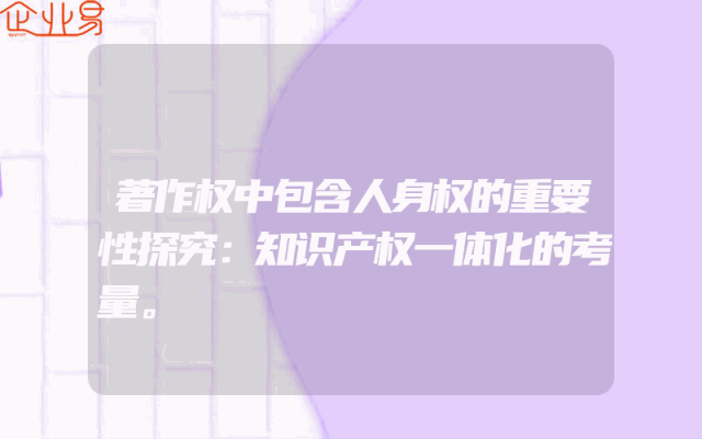 - 著作权中包含人身权的重要性探究:知识产权一体化的考量。