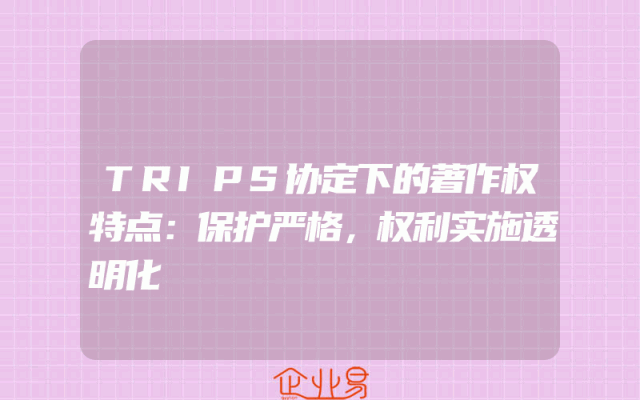 - TRIPS协定下的著作权特点:保护严格,权利实施透明化