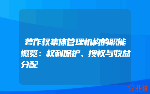 - 著作权集体管理机构的职能概览:权利保护、授权与收益分配