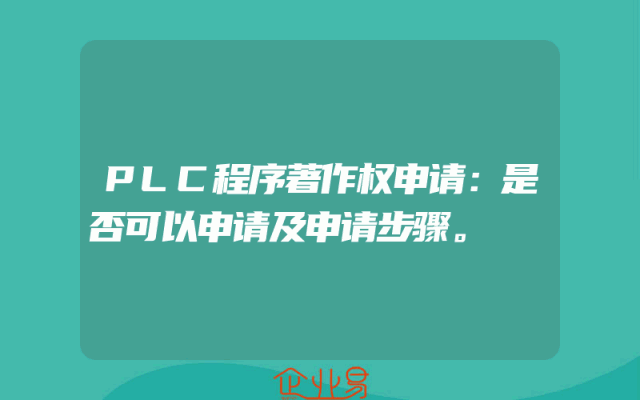 - PLC程序著作权申请:是否可以申请及申请步骤。