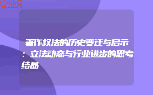 - 著作权法的历史变迁与启示:立法动态与行业进步的思考结晶